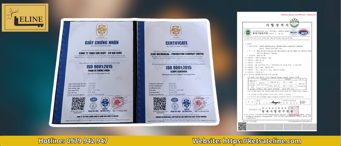 Công ty TNHH Sản Xuất – Cơ Khí ELINEnhà sản xuất két sắt uy tín tại Việt Nam, được thành lập từ năm 2016. Với nhà máy hiện đại đạt chứng nhận ISO 9001:2015, ELINE mang đến các dòng két sắt chất lượng cao, thiết kế tinh tế, tích hợp công nghệ bảo mật tiên tiến như khóa cảm biến, khóa vân tay, khóa điện tử kết nối điện thoại. Tất cả sản phẩm đều Made in Vietnam, chính hãng 100%, được sản xuất trên dây chuyền chuyên nghiệp và đã xuất khẩu sang nhiều thị trường quốc tế như Mỹ, Libya, Myanmar, Trung Quốc, Iraq, Ai Cập.