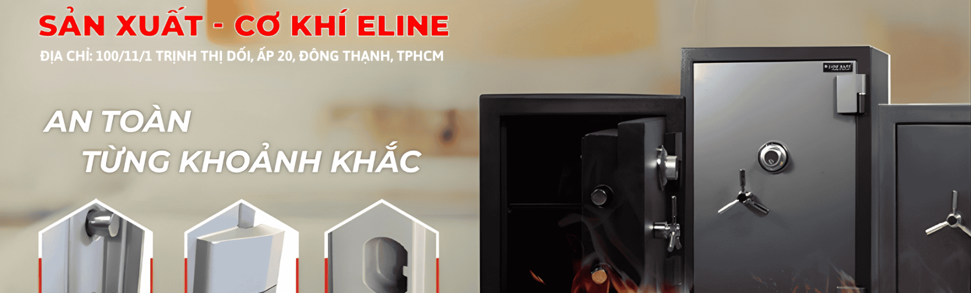 Eline chuyên sản xuất và cung cấp các mặt hàng két sắt đa dạng và phong phú với nhiều mẫu mã đẹp và hiện đại, kết hợp kèm theo đó nhiều dòng khóa có độ bảo mật cao như: khóa điện tử, khóa cơ đổi mã, khóa vân tay, và khóa cảm biến kết nối với điện thoại,……