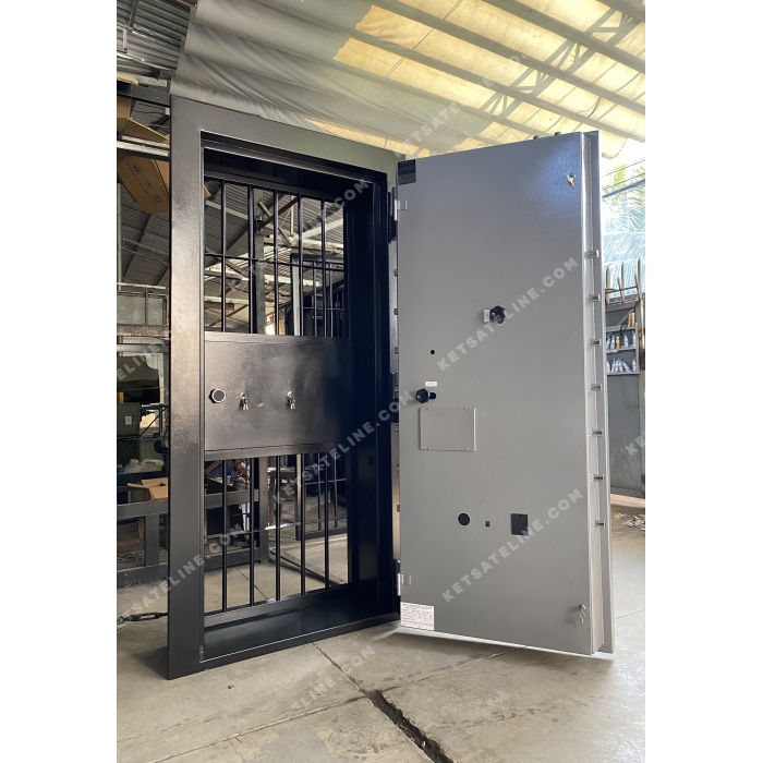 CỬA KHO TIỀN NGÂN HÀNG -CỬA SẮT KHO BẠC Cánh cửa được sản xuất bởi CÔNG TY TNHH SẢN XUẤT-CƠ KHÍ ELINE. Sản phẩm chất lượng cao, linh kiện nhập khẩu 100%, sản xuất trên dây chuyền tiên tiến. Sản phẩm đã đươc kiểm định chất lượng cũng như khả năng chống cháy theo tiêu chuẩn Hàn Quốc. Màu sắc đẹp, thiết kế sang trọng. Sản phẩm thích hợp cho ngân hàng, kho bạc Nhà nước.. Cánh cửa kho bạc có phần khung bao được sử dụng thép tấm có độ dày từ 3mm trở lên tùy khách lựa chọn khi đặt hàng. Cửa kho được tạo hình kết cấu vững chắc. Công ty Eline chuyên cung cấp cửa kho tiền nhằm giúp cho các cơ quan bảo vệ được tài sản của mình một cách tốt nhất. Với nhiều năm trong lĩnh vực sản phẩm của mình. Chúng tôi đảm bảo đem đến cho quý khách hàng chất lượng tốt, giả cá ưu đãi, dịch vụ hoàn hảo và an toàn cho quý khách. Nhận sản xuất theo yêu cầu thiết kế quý khách.