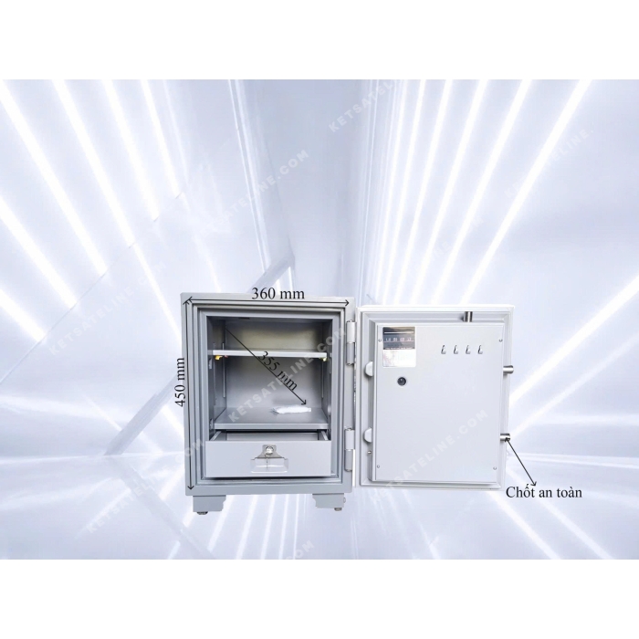 Nổi bật trong phân khúc két sắt chính hãng chất lượng cao, chúng tôi tự hào giới thiệu mẫu sản phẩm đột phá cho giai đoạn 2025-2026: Két sắt chống cháy HOSHANG HS-65E. Được tích hợp khóa điện tử hiện đại cùng công nghệ bảo vệ tiên tiến, HS-65E không chỉ là nơi lưu trữ an toàn mà còn là lựa chọn đáng tin cậy hàng đầu, mang lại sự an tâm tuyệt đối cho tài sản của bạn.