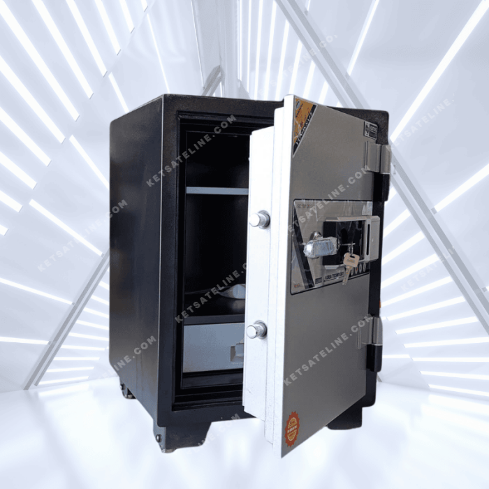 Bên trong két có 3 ngăn tiện dụng, gồm 1 hộc ngăn kéo và đợt di chuyển linh hoạt, giúp sắp xếp tài sản gọn gàng và dễ quản lý.