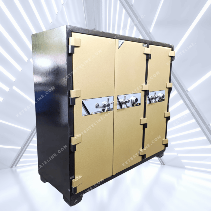 - Két gồm 3 cửa (3 tay nắm 5 chìa, 2 khoá cơ và 3 khoá chìa chống xoay)