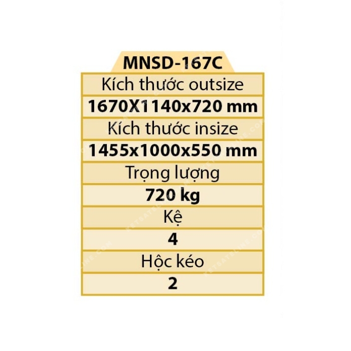 KÉT SẮT MONEY KHÓA CƠ MNSD-167Clà chiếc két sắt có kích thước lớn như một chiếc tủ thông thường két có thể lưu trữ được rất nhiều tài liệu, tài sản trong môi trường công việc đặc thù như ngân hàng. Két đươc trang bị khóa cơ đổi mã tiện dụng cho phép khách hàng khi sử dụng có thể tự thay đổi mật khẩu theo ý muốn mà không bị giới hạn số lần đổi mã.